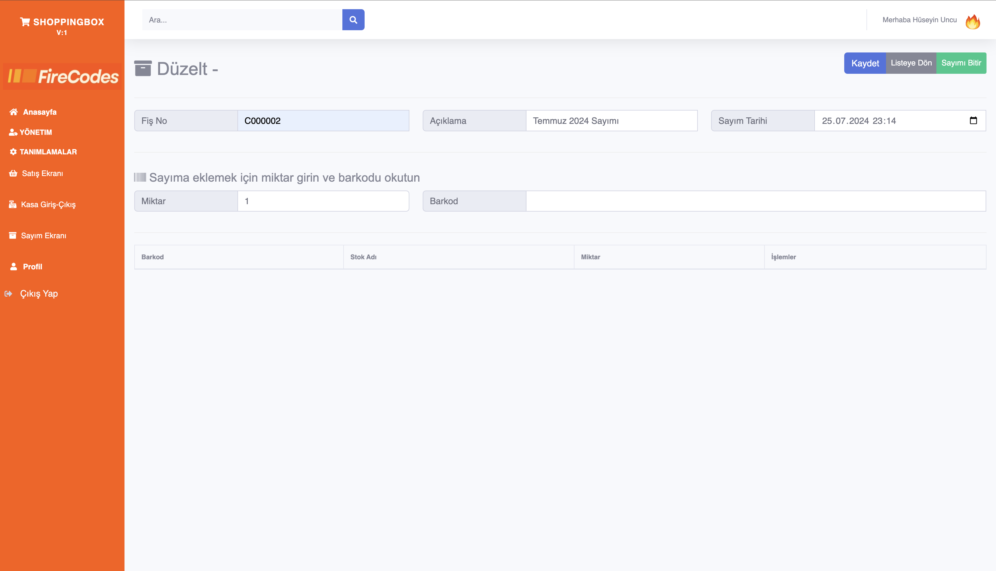 Fiili stoklarınızın kontrolünü ve ShoppingBox stok miktarları ile tutarlılığını sağlamak için sayım ekranını kullanabilirsiniz. Tek yapmanız gereken yeni bir sayım başlatıp fiili stok barkodlarınızı okutmak. Sayımı bitirip sayıları eşitle ye tıkladığınızda ShoppingBox'taki stok miktarlarınız sayımda ulaştığınız fiili stoklarınızla eşitlenecek ve doğru verilerle çalışmanın rahatlığını yaşayacaksınız.