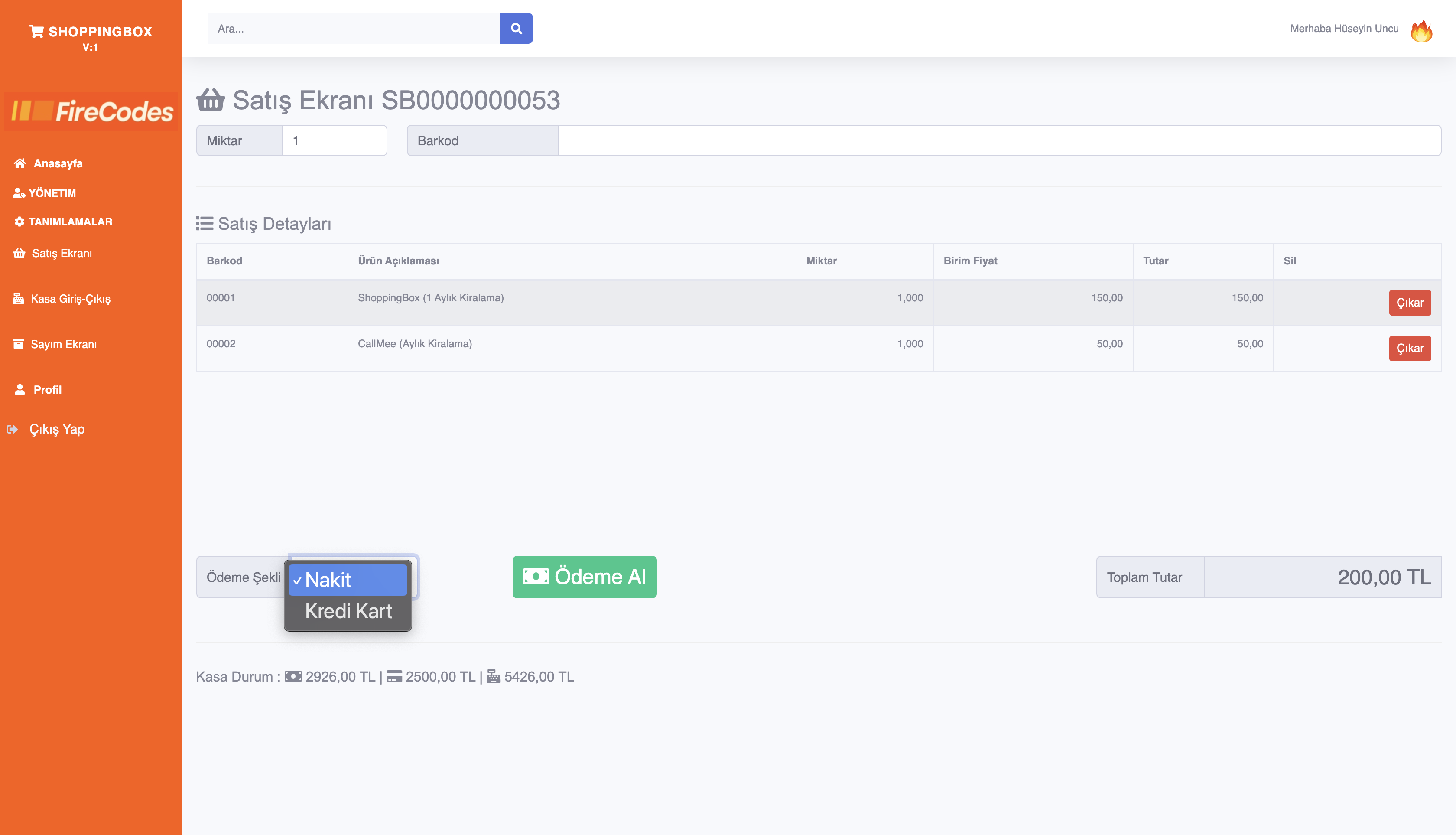 Seçtiğiniz ödeme yöntemine (Nakit veya Kredi Kartı) göre kasanıza para giriş işlemi de sağlanmış olacaktır.
